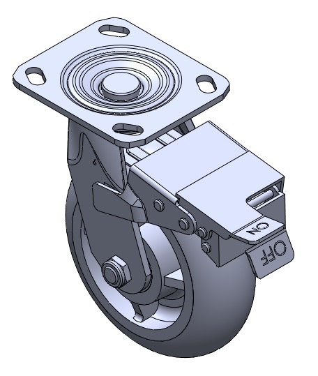 Casters with a front brake and With locking system. Welded Caster Fork. Zine-Plated. Mounting Type - Top Plate. High-Quality Impact-Resistant Polypropylene Wheel Center with High-Quality Reinforced Polypropylene Rubber (TPR) Wheel Tread. Dark gray. Bearings: Ball Bearings. |
