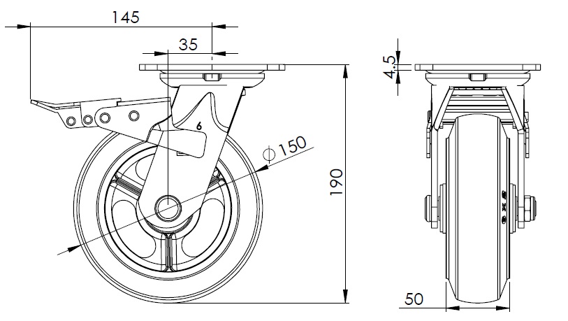 Rubber (black) Wheel Diameter × Wheel Width 150 x 50mm |