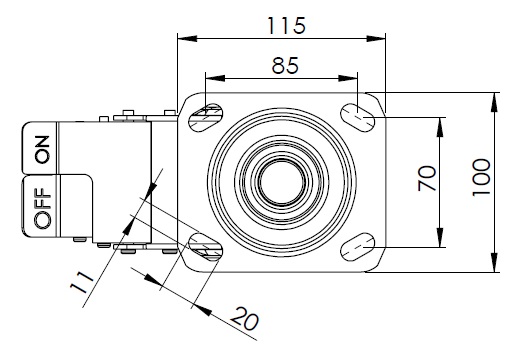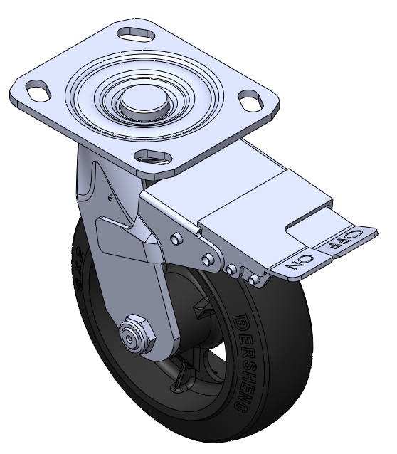Casters with front brake and With locking system. Welded Caster Fork. Zine-Plated. Mounting Type - Top Plate. Cast Iron Wheel Center with High-Quality Resilient Rubber Wheel Tread. Black. Bearings—Annual Ball Bearings. |