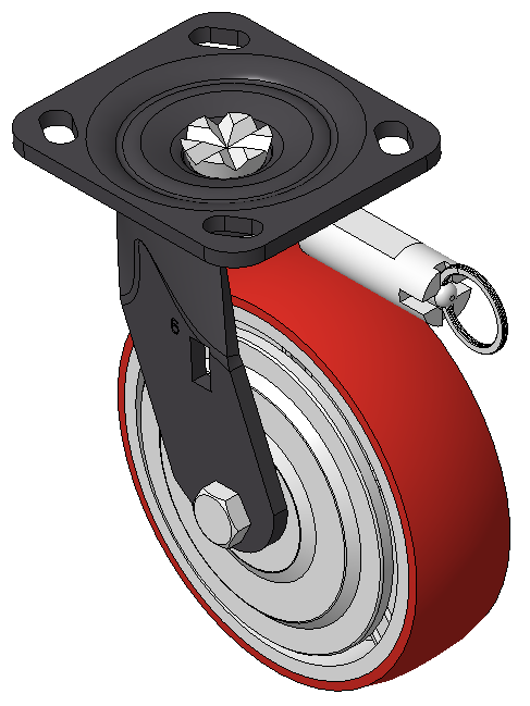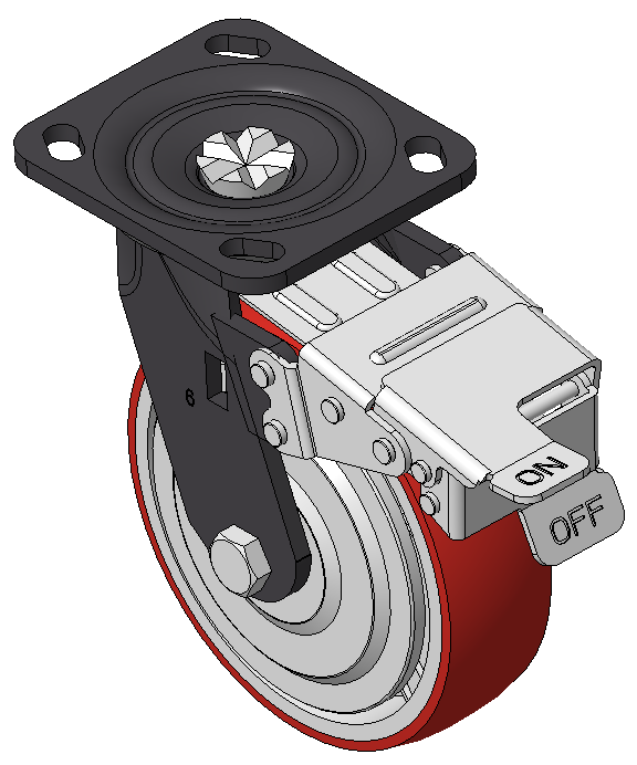Modible Casters, Welded Caster Fork, black painted finish Plate Mounting Type, 85x70mm Bolt Hole Spacing Cast Iron wheel Wheel Wheel Hub, High Quality Polyurethane Wheel Tread, Cast Iron red Bearings—Ball Bearings, with iron caps |