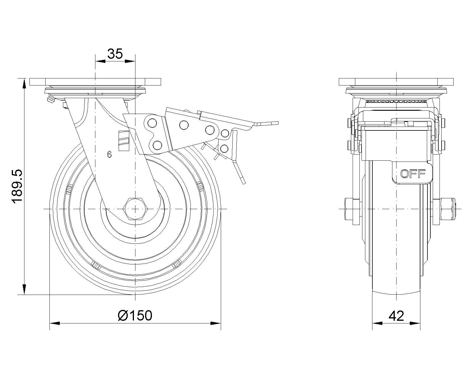 | QPU (Brown round) Wheel Diameter × Wheel Width 150 x 42mm |