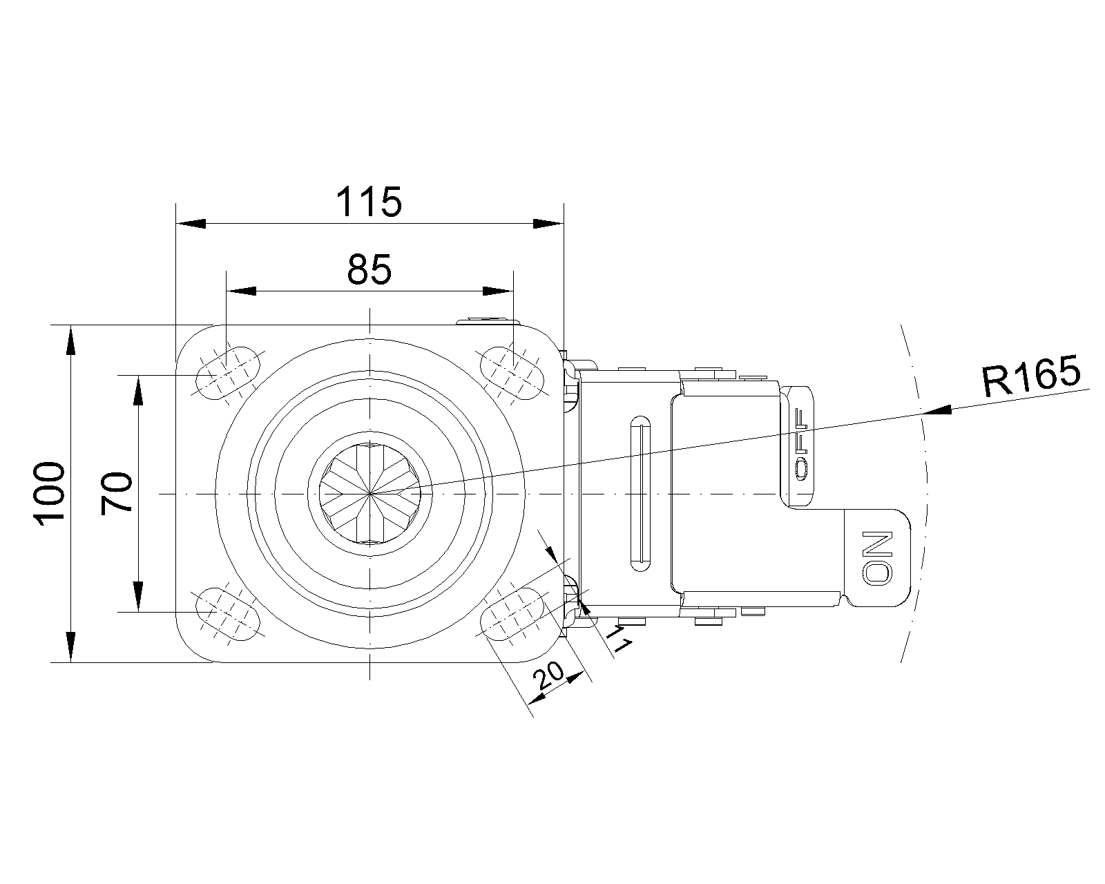 Front-brake Casters, Welded Caster Fork, black paint finish Base plate Mounting Type device, 85x70mm Bolt Hole Spacing Cast Iron Wheel Center, High Quality Polyurethane Wheel Tread, Cast Iron brown Bearings—Ball Bearings, with iron caps |