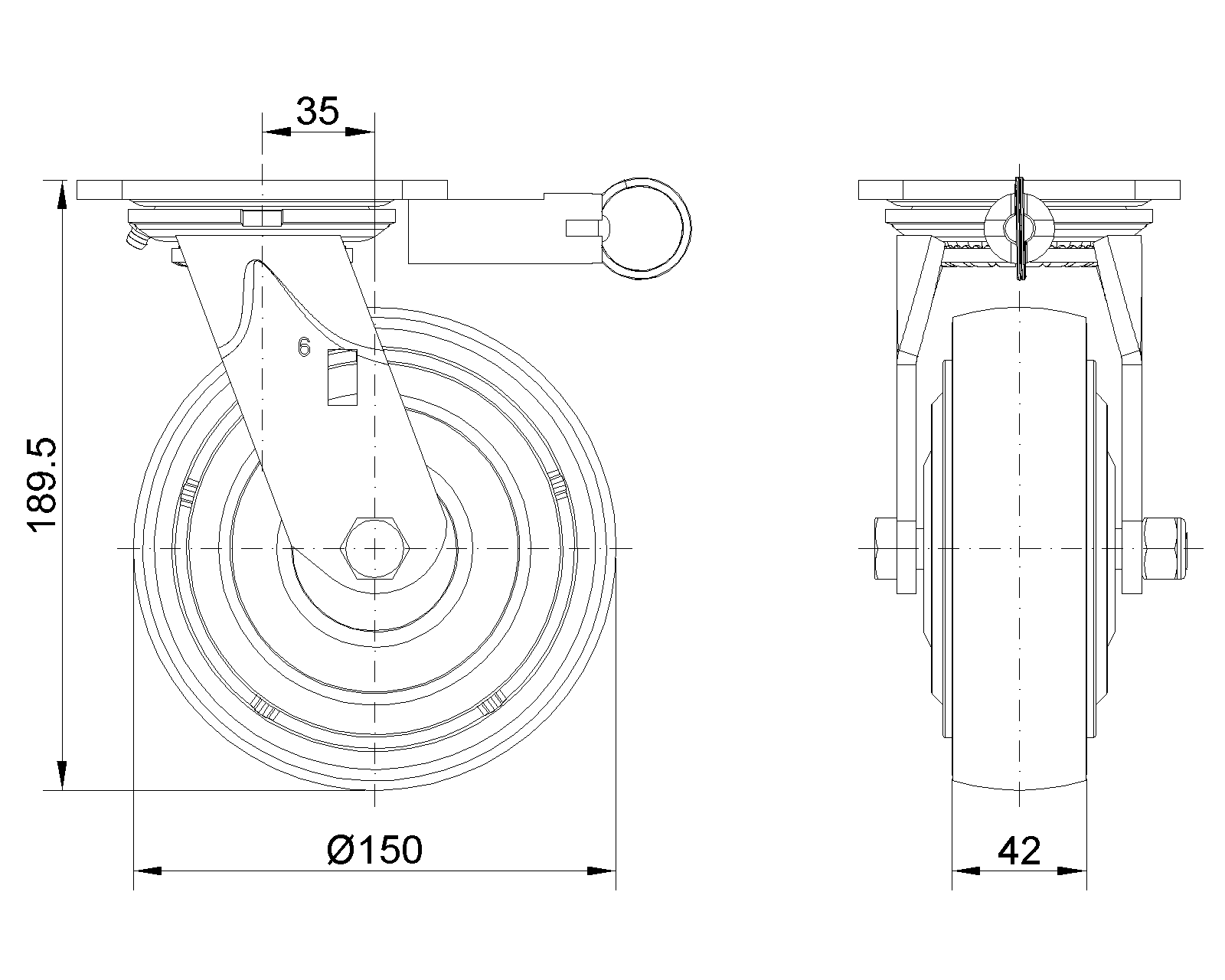 | PU (red round) Wheel Diameter x Wheel Width 150x 42mm |