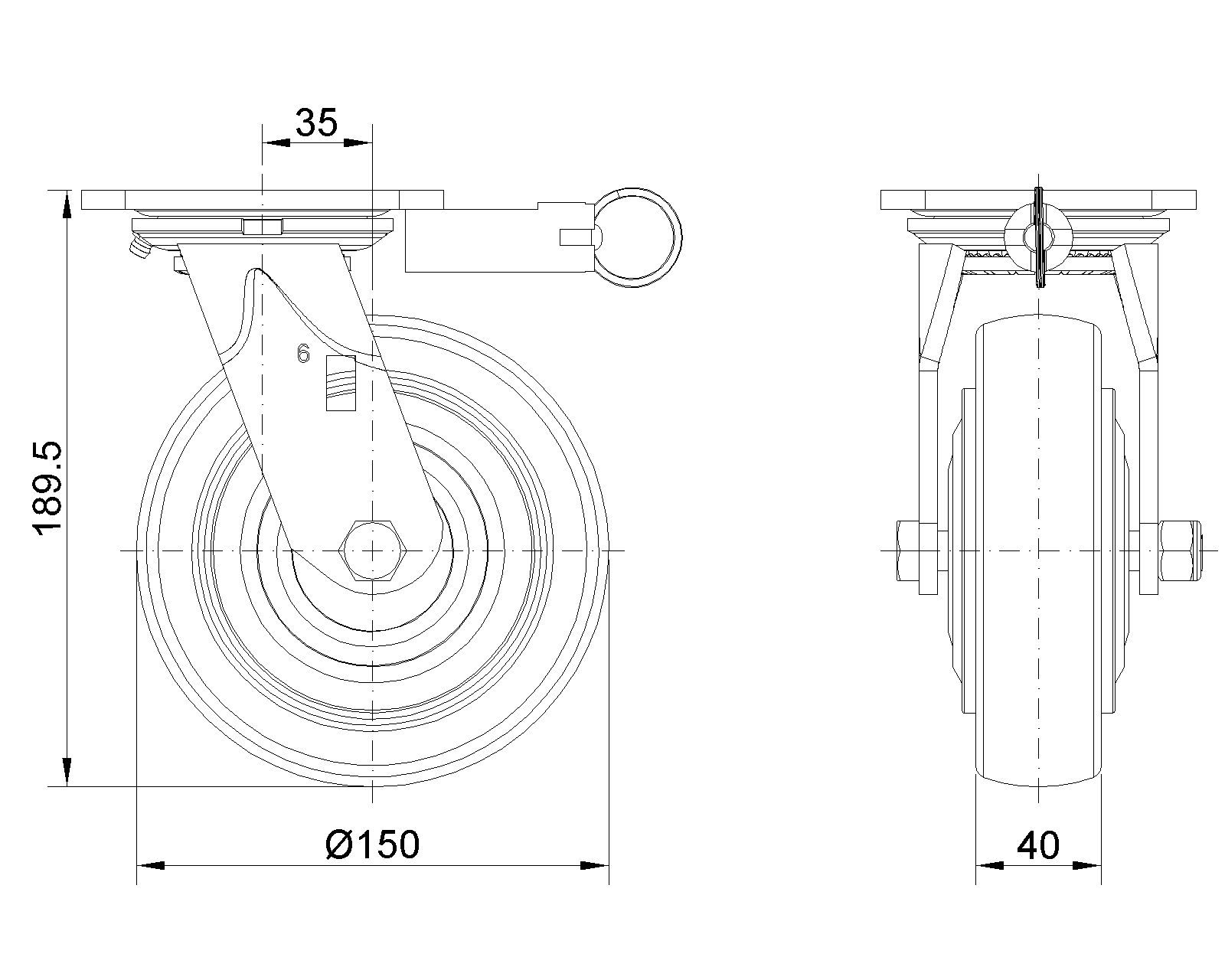 | Wheel surface: Thermoplastic (PA6) Wheel Center: Thermoplastic (PA6) Drawings are for reference only and may differ from the product |