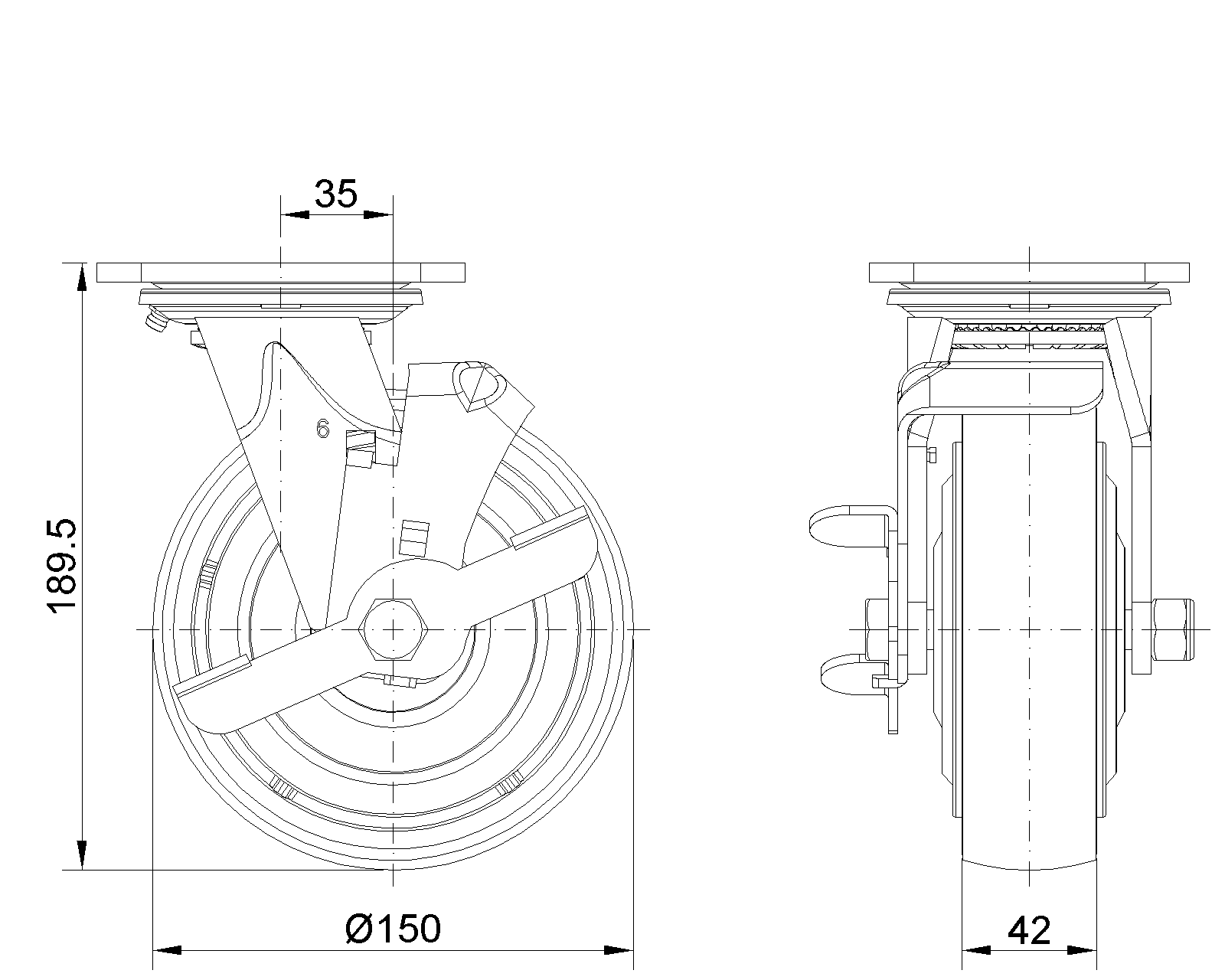 | QPU (Brown round) Wheel Diameter × Wheel Width 150 x 42mm |