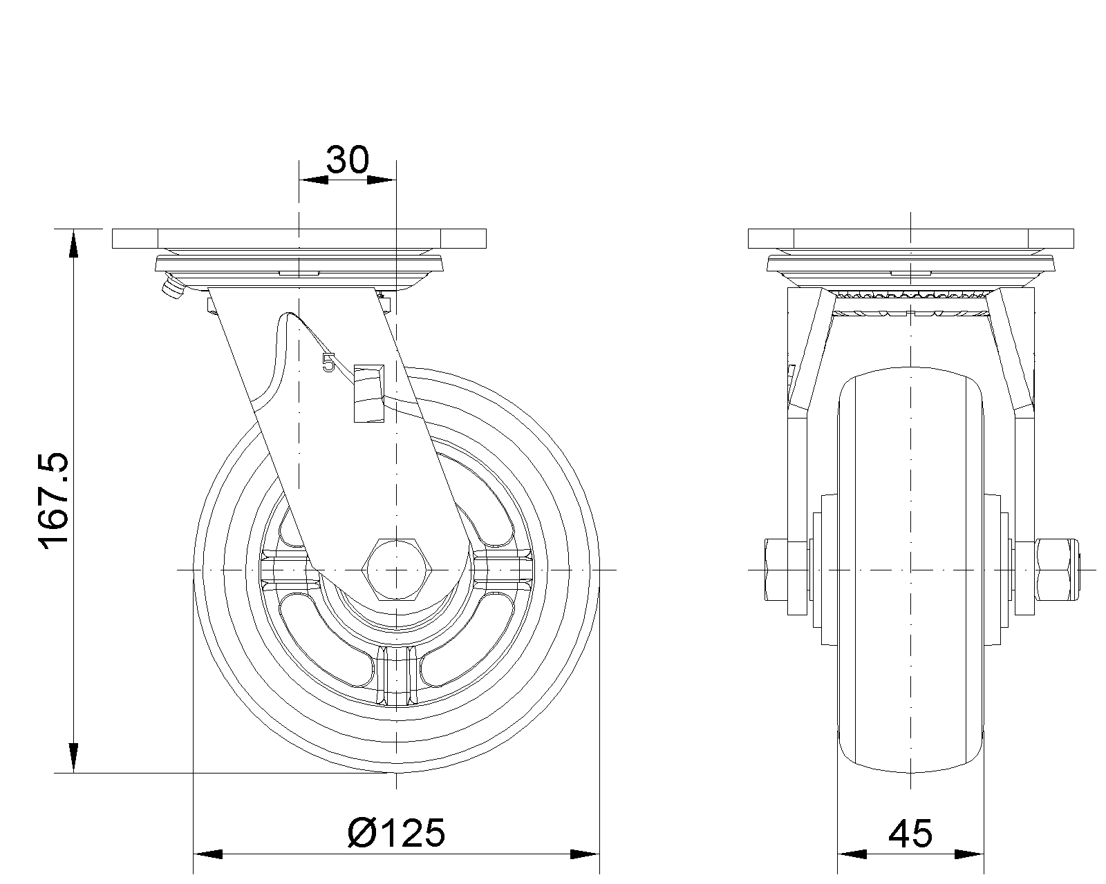 | Wheel Tread: Hhigh-Quality Polyurethane Wheel Center: Iron core / Cast iron core Drawings are for reference only and may differ from the product |