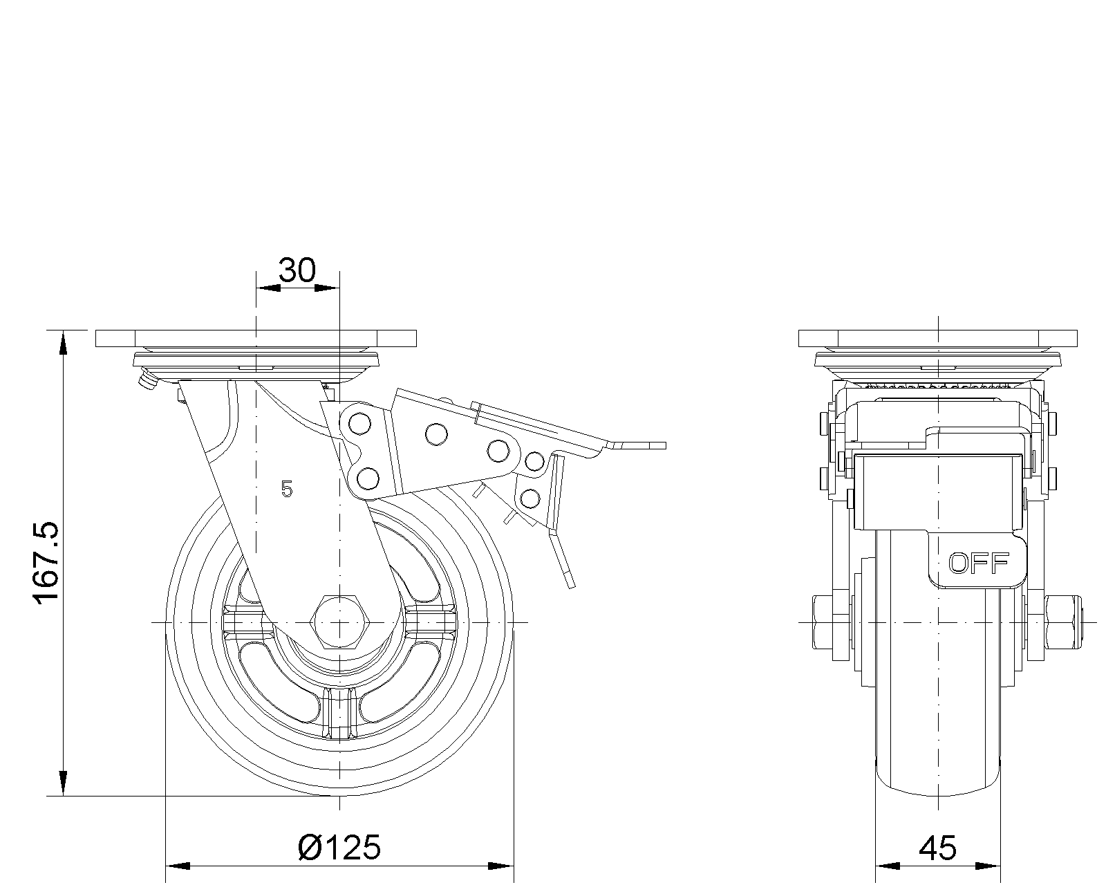 | Wheel Tread: Hhigh-Quality Polyurethane Wheel Center: Iron core / Cast iron core Drawings are for reference only and may differ from the product |
