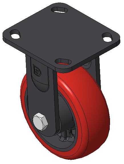 | Side-brake Casters, Welded Caster Fork, black paint finish. Base plate Mounting Type, 85x70mm Bolt Hole Spacing. Cast Iron Wheel Center, High Quality Polyurethane Wheel Tread, Cast Iron red. Bearings—Ball Bearings. |