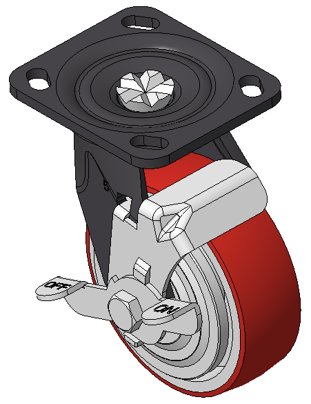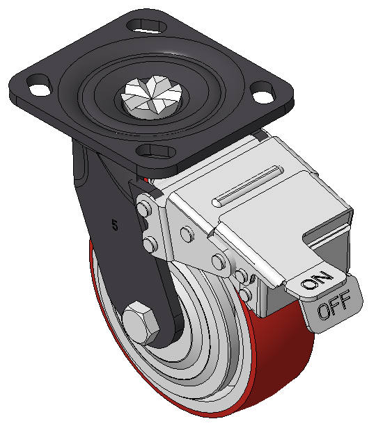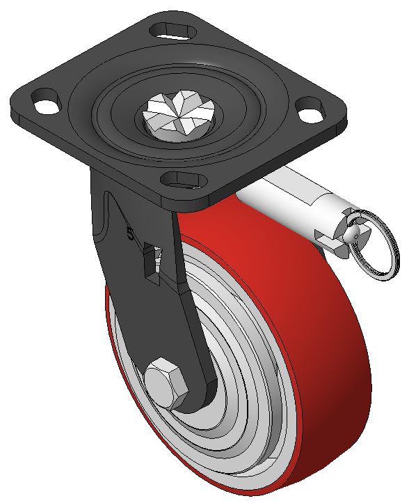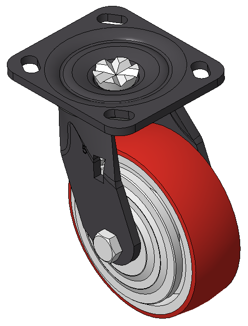 Modible Casters, Welded Caster Fork, black painted finish Plate Mounting Type, 85x70mm Bolt Hole Spacing Cast Iron wheel Wheel Wheel Hub, High Quality Polyurethane Wheel Tread, Cast Iron red Bearings—Ball Bearings, with iron caps |