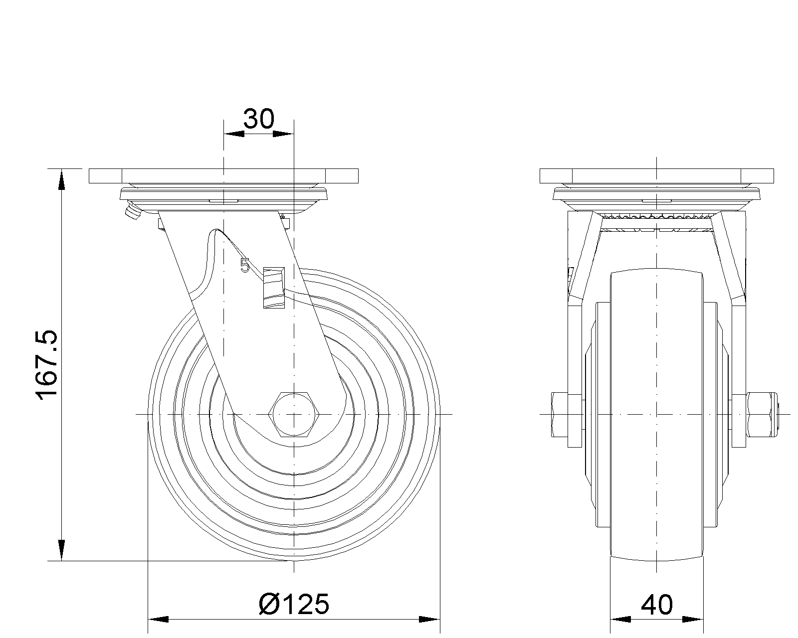 | Wheel Tread: Hhigh-Quality Polyurethane Wheel Center: Iron core / Cast iron core Drawings are for reference only and may differ from the product |