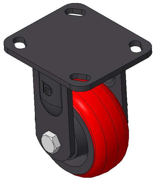 Front-brake Casters, Welded Caster Fork, black paint finish Base plate Mounting Type device, 85x70mm Bolt Hole Spacing Cast Iron Wheel Center, High Quality Polyurethane Wheel Tread, Cast Iron red Bearings—Ball Bearings |