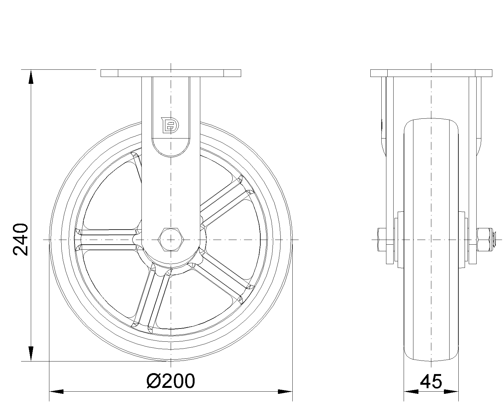 | PU Wheel (Red Arc) Wheel Diameter × Wheel Width 200×45mm |