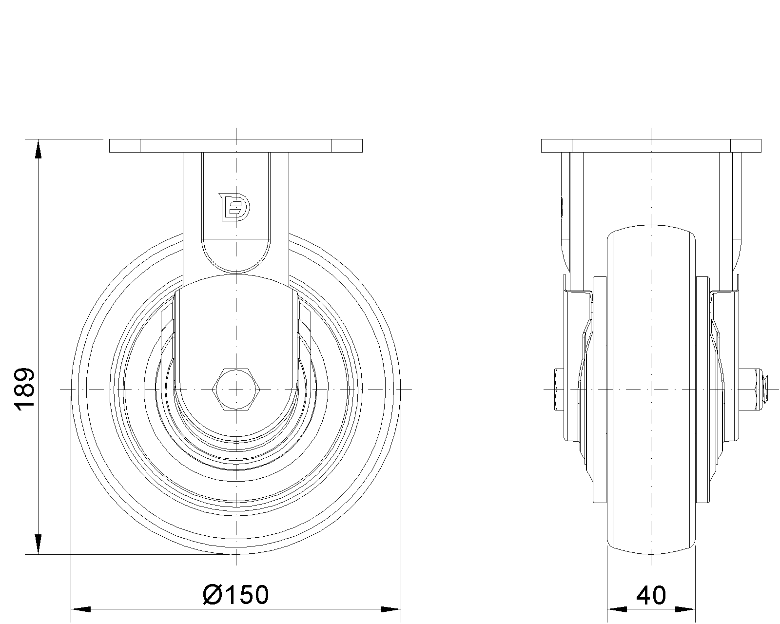 | Wheel surface: Thermoplastic (PA6) Wheel Center: Thermoplastic (PA6) Drawings are for reference only and may differ from the product |