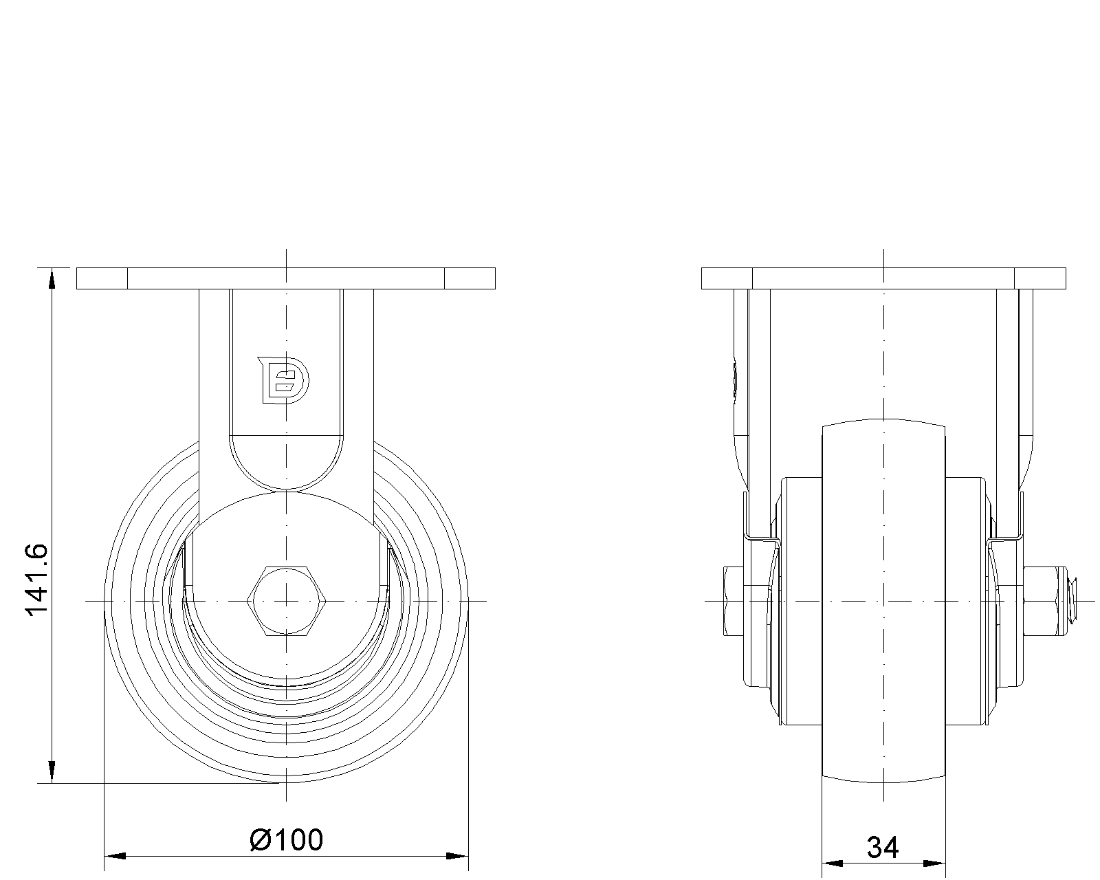 | PU (Red arc) Wheel Diameter × Wheel Width 100 x 34mm |