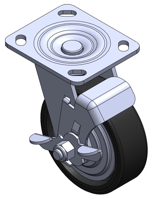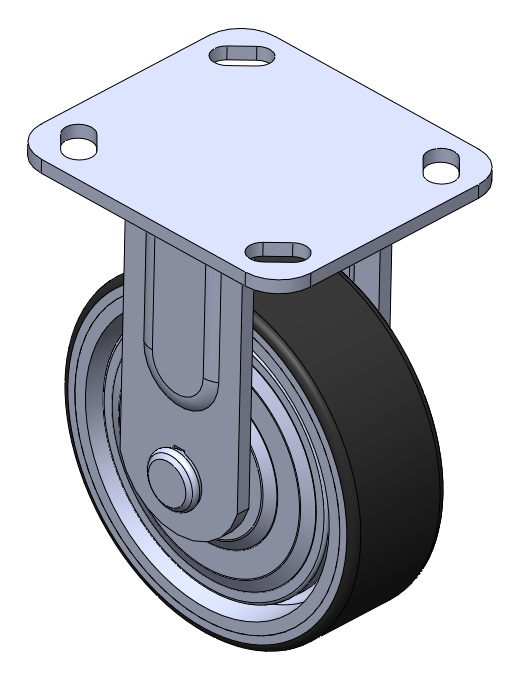 | 固定式腳輪,焊接鋼板架 表面鍍鋅,底板式安裝裝置(附鐵蓋) 鑄鐵製輪芯,高品質聚氨酯輪面 黑色,輪子軸承—精密滾珠。 |