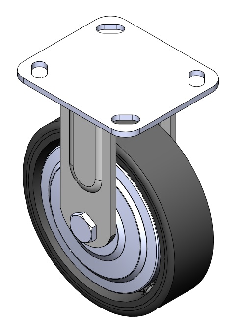 | 固定式腳輪,焊接鋼板架 表面鍍鋅,底板式安裝裝置-無Logo 鑄鐵製輪芯,高品質聚氨酯輪面(附鐵蓋) 黑色,輪子軸承—精密滾珠。 |