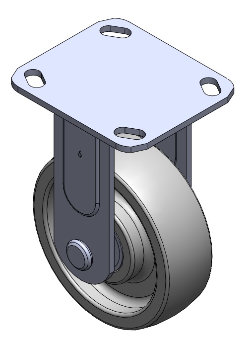 | 固定式腳輪,焊接鋼板架 表面鍍鋅,底板式安裝裝置 熱可塑性塑膠輪芯、輪面(裝5吋輪) 白色,輪子軸承—精密滾珠。 |