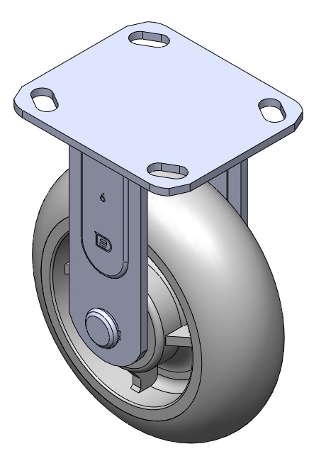 | 固定式腳輪,焊接鋼板架 表面鍍鋅,底板式安裝裝置 耐衝擊聚丙烯輪芯,熱塑性彈性體(TPR)輪面 灰色,輪子軸承—精密長珠。 |