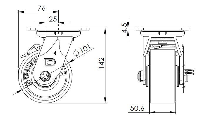 | 配有側(輪)煞式,鎖定系統的腳輪。焊接鋼板架 表面鍍鋅,底板式安裝裝置 鑄鐵製輪芯,高品質聚氨酯輪面 銑綠色,輪子軸承—精密長珠。 |