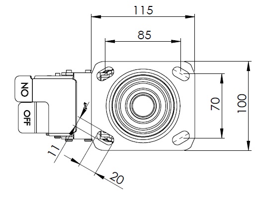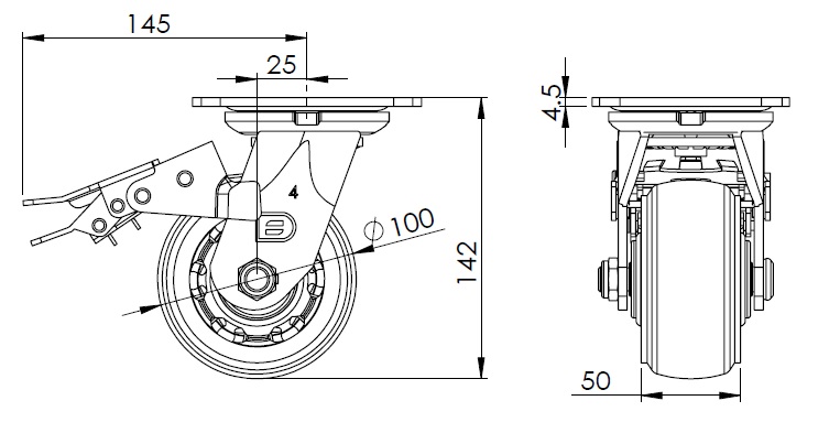 | 配有前煞式,鎖定系統的腳輪。焊接鋼板架 表面鍍鋅,底板式安裝裝置 加強式耐衝擊聚丙烯輪芯,熱塑性彈性體(TPR)輪面 灰色,輪子軸承—精密長珠。 |