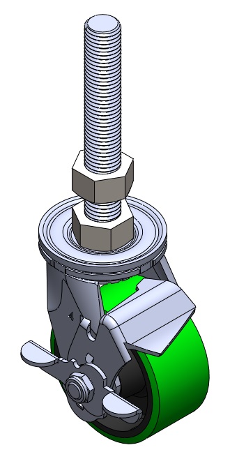 | 配有側(輪)煞式,鎖定系統的腳輪。牙心鉚合焊接鋼板架— M24 表面鍍鋅,底板式安裝裝置 鑄鐵輪芯、高品質聚氨酯輪面 綠色,輪子軸承—精密長珠。 |