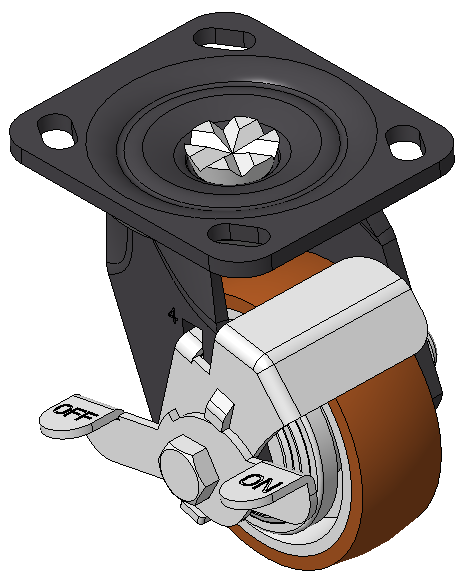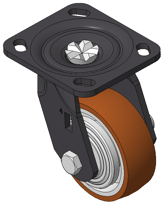 表面黑漆,底板式安裝裝置,孔距85x70 鑄鐵製輪芯,高品質聚氨酯輪面,銑褐色 輪子軸承—精密滾珠,配塑蓋 |