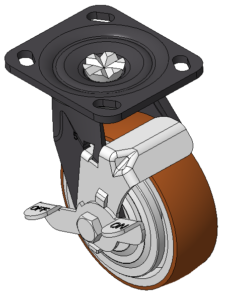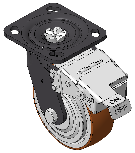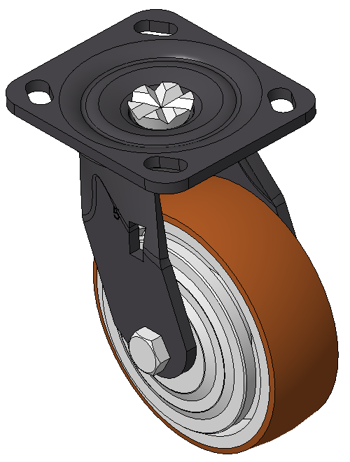 表面黑漆,底板式安裝裝置,孔距85x70 鑄鐵製輪芯,高品質聚氨酯輪面,銑褐色 輪子軸承—精密滾珠,配塑蓋 |