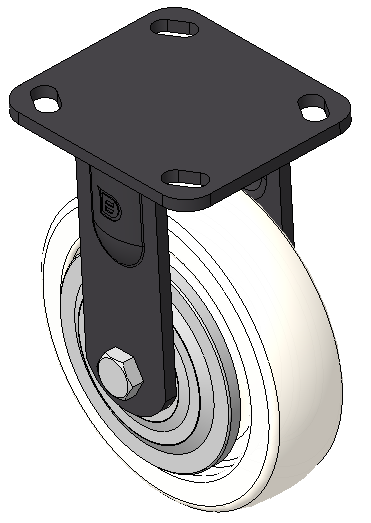 活動式的腳輪,焊接鋼板架,表面黑漆 底板式安裝裝置,孔距85x70 熱塑性塑膠(PA6),銑原色 輪子軸承—精密滾珠,附鐵蓋 |
