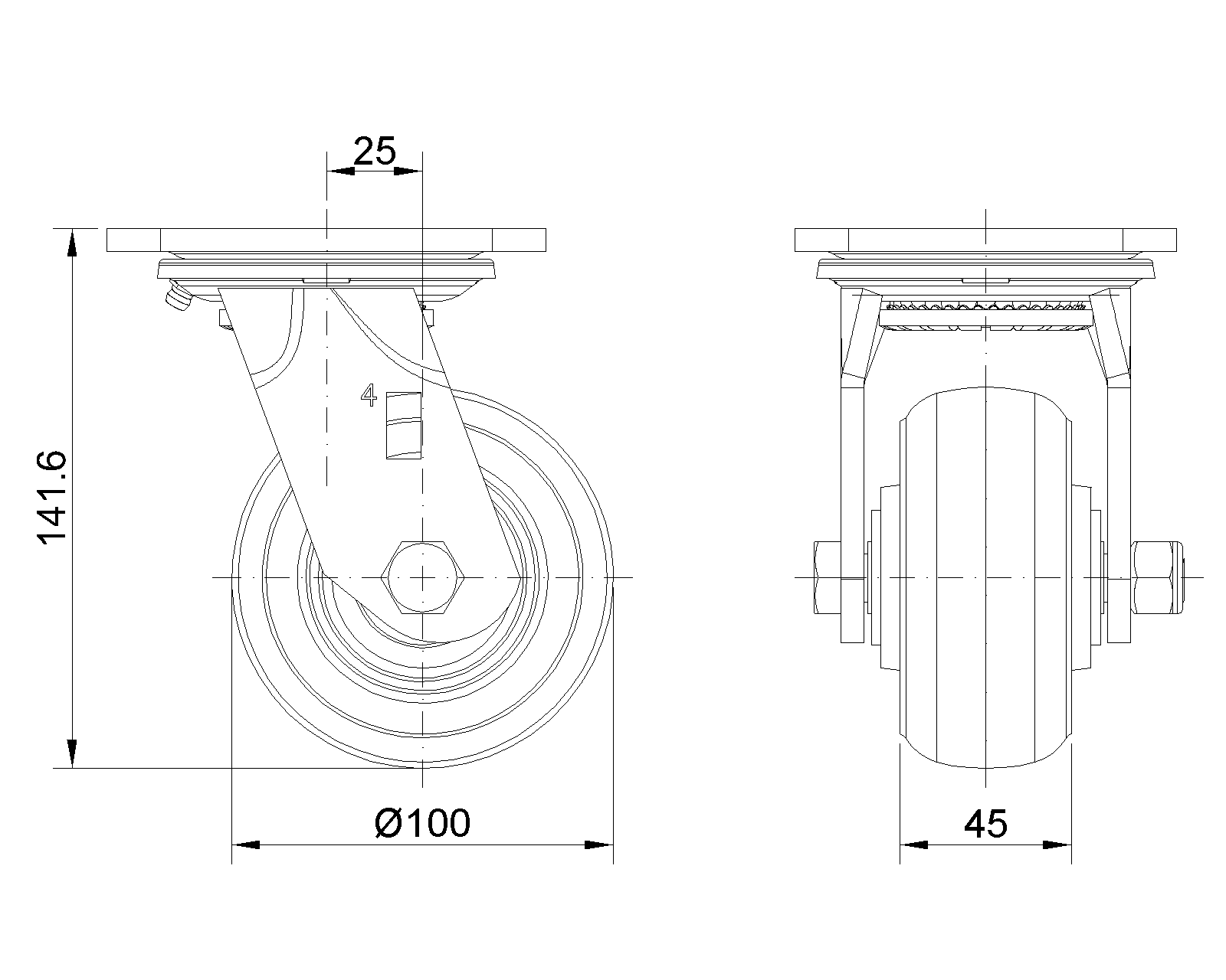 | PU輪(紅弧) 輪徑 × 輪寬 100x 45mm |