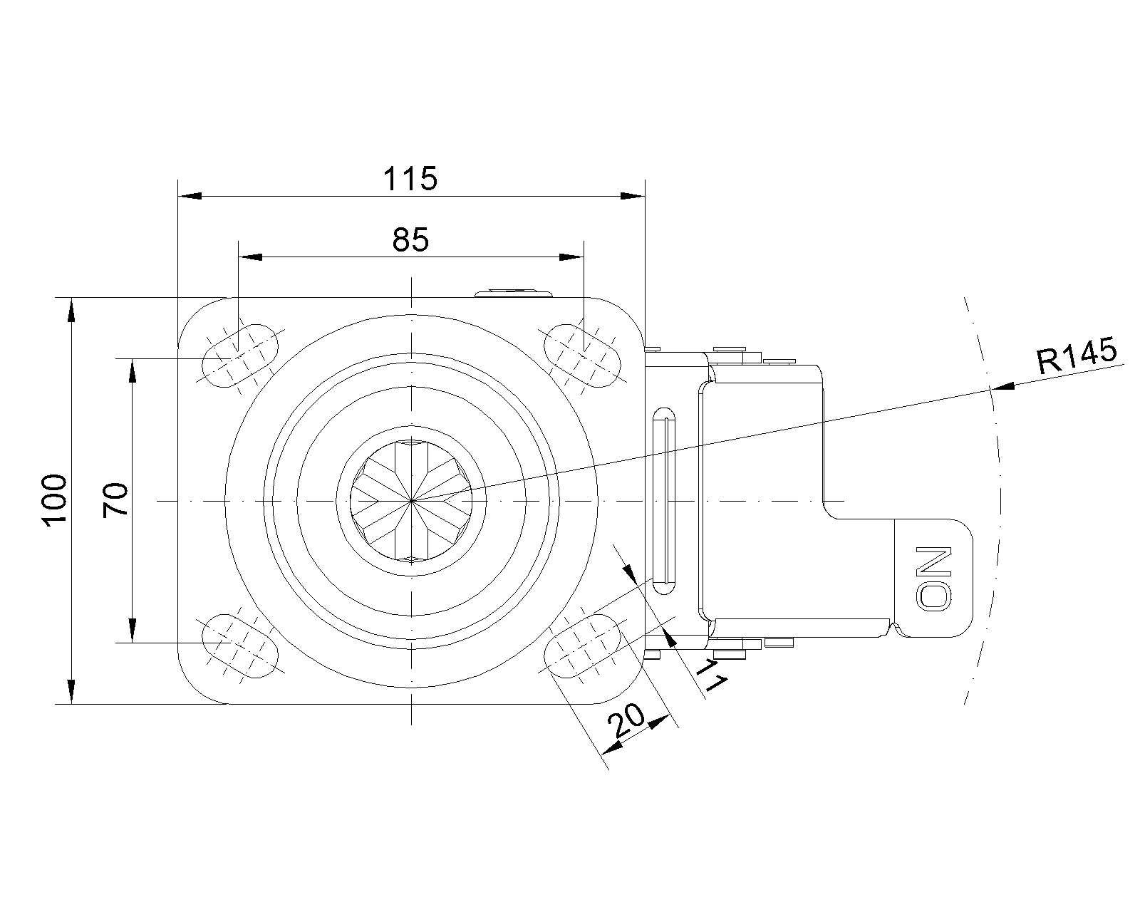 前煞式的腳輪,焊接鋼板架,表面黑漆 底板式安裝裝置,孔距85x70 鑄鐵製輪芯,高品質聚氨酯輪面,銑褐色 輪子軸承—精密滾珠,附鐵蓋 |