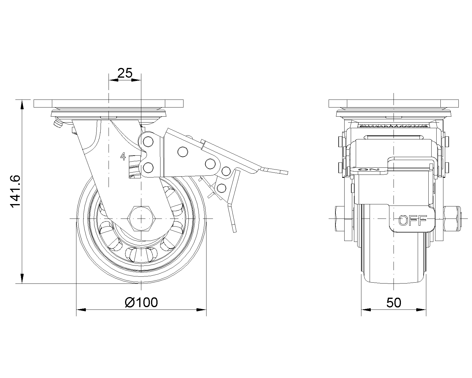 前煞式的腳輪,焊接鋼板架,表面黑漆 底板式安裝裝置,孔距85x70 熱塑性橡膠彈性體(TPR) 銑珠光淺灰色,輪子軸承—精密滾珠 |
