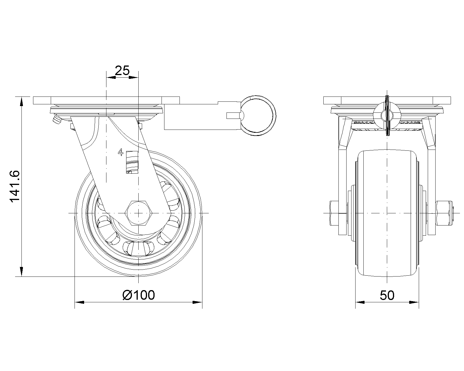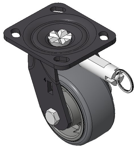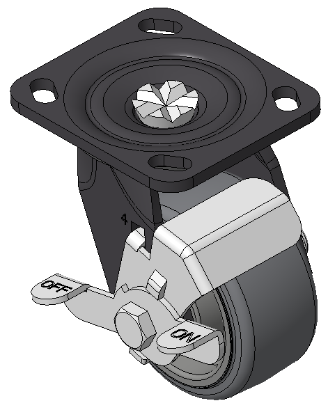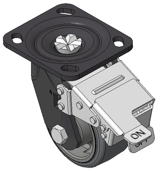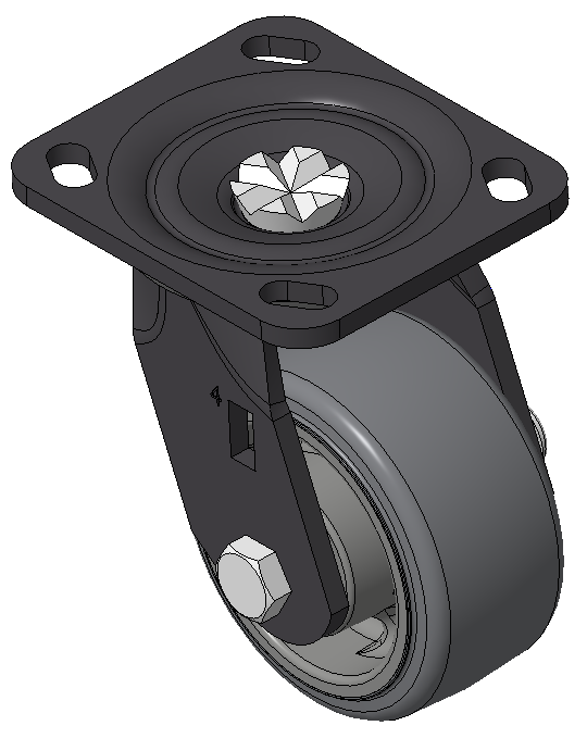 定向煞式的腳輪,焊接鋼板架,表面黑漆 底板式安裝裝置,孔距85x70 熱塑性橡膠彈性體(TPR) 銑珠光淺灰色,輪子軸承—精密滾珠 |