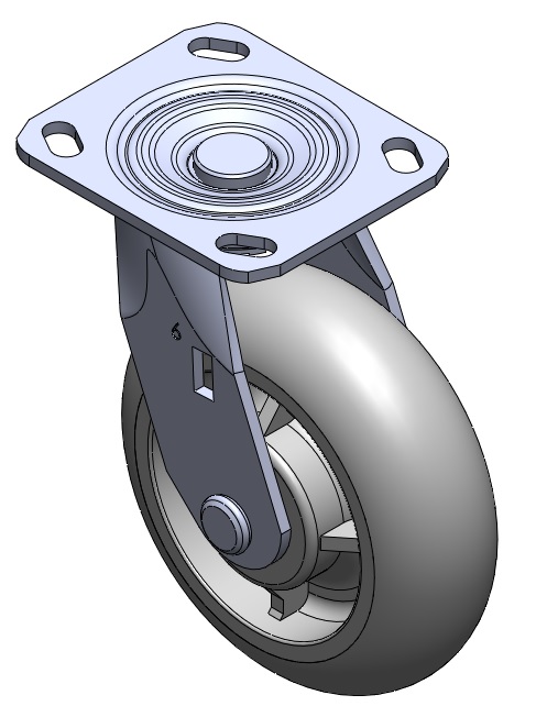 Hoàn thiện mạ kẽm, lắp đế Lõi bánh xe bằng polypropylene chống va đập với gai nhựa nhiệt dẻo đàn hồi (TPR) Vòng bi bánh xe màu xám—mép dài chính xác. |