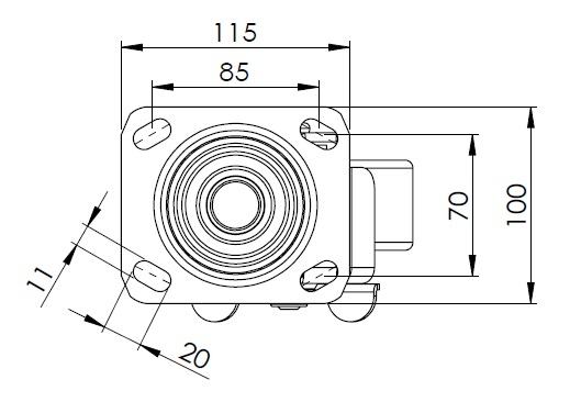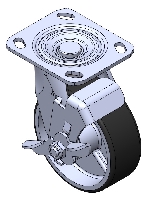 | Bánh xe có phanh hông và hệ thống khóa. Khung thép hàn. Hoàn thiện mạ kẽm. Lắp đế. Lõi gang với gai polyurethane chất lượng cao. Màu đen. Vòng bi bánh xe—bi dài chính xác. |