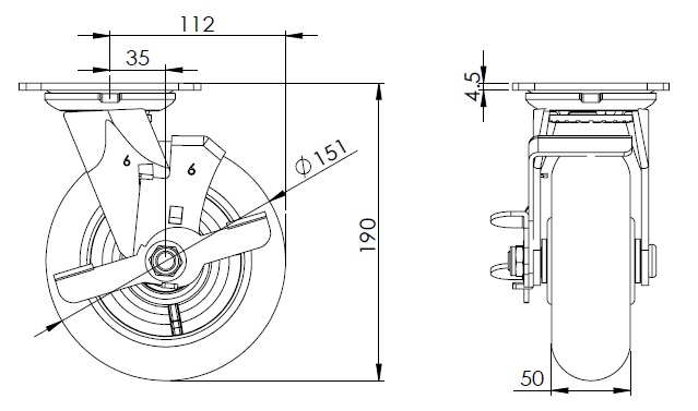 | Bánh xe hiệu ứng đầy đủ Đường kính bánh xe × chiều rộng bánh xe 151 x 50mm |