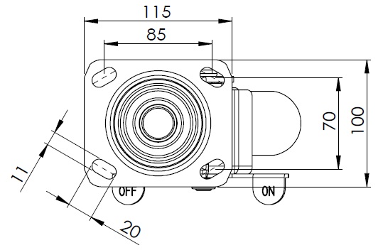 | Bánh xe có phanh hông và hệ thống khóa. Khung thép hàn. Hoàn thiện mạ kẽm. Lắp đế. Lõi bánh xe bằng polypropylen chống va đập với gai lốp bằng nhựa nhiệt dẻo đàn hồi (TPR). Màu xám. Vòng bi bánh xe: vòng bi bi chính xác. |