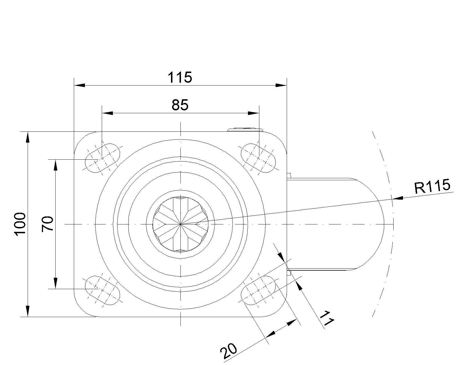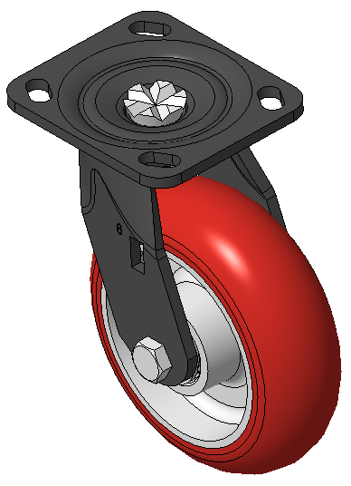 Sơn đen, lắp đặt bằng tấm đế, khoảng cách lỗ 85x70mm Lõi bánh xe bằng gang, bề mặt bánh xe bằng polyurethane chất lượng cao, màu đỏ phay Vòng bi bánh xe—vòng bi cầu chính xác |