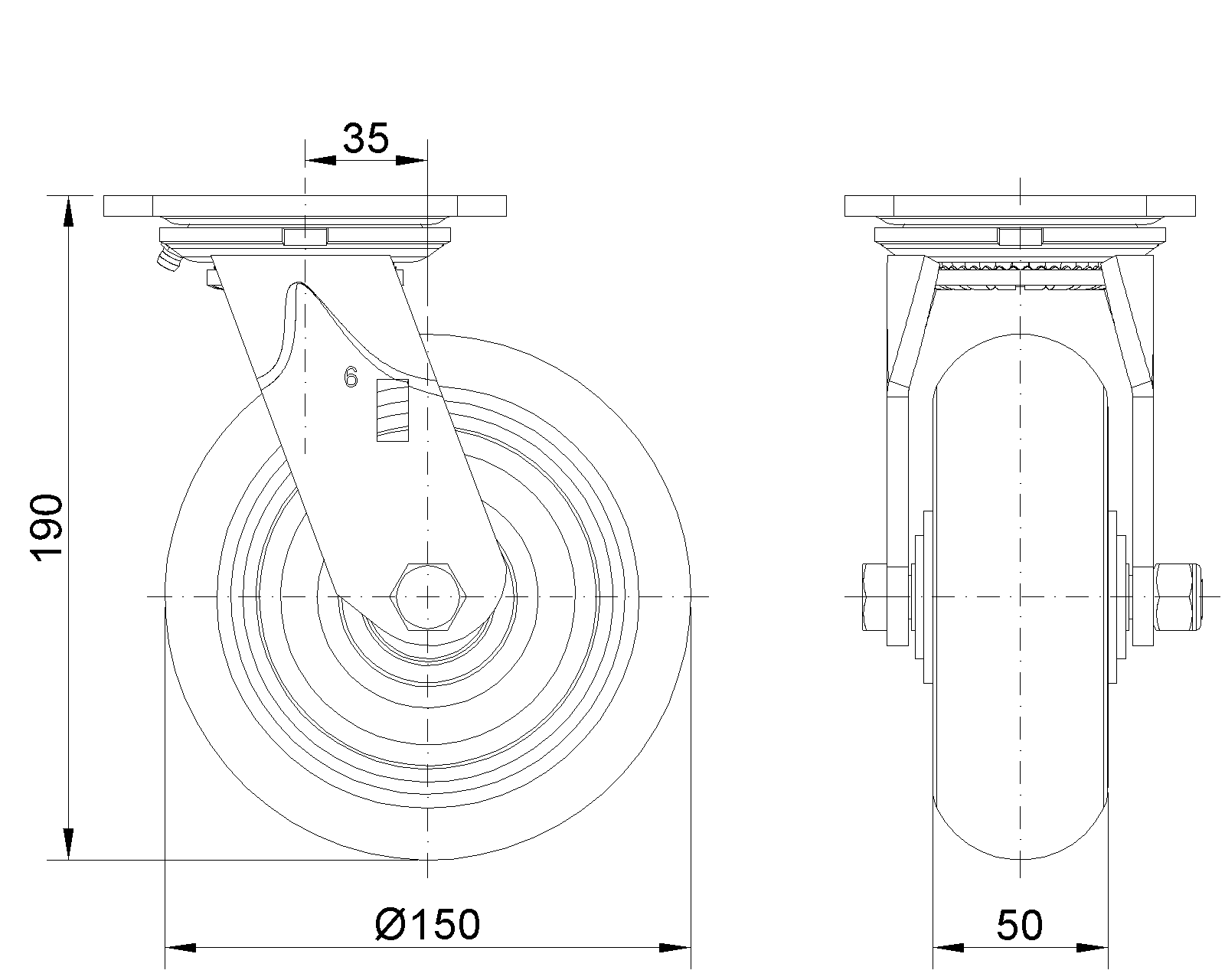 | Bánh xe EPU (Đường cong đỏ) Đường kính bánh×Chiều rộng bánh 150×50mm |