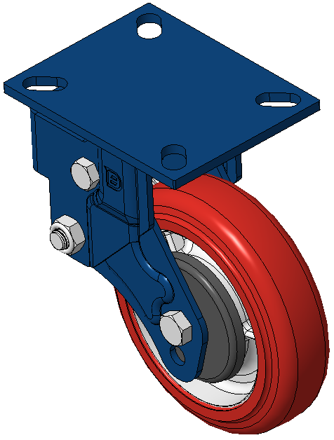 Blue painted finish, Mounting Type - Top Plate, 105 x 78.5 Bolt Hole Spacing Cast Iron Wheel Center with High Quality Polyurethane Wheel Tread, Cast Iron red Bearings—Ball Bearings |