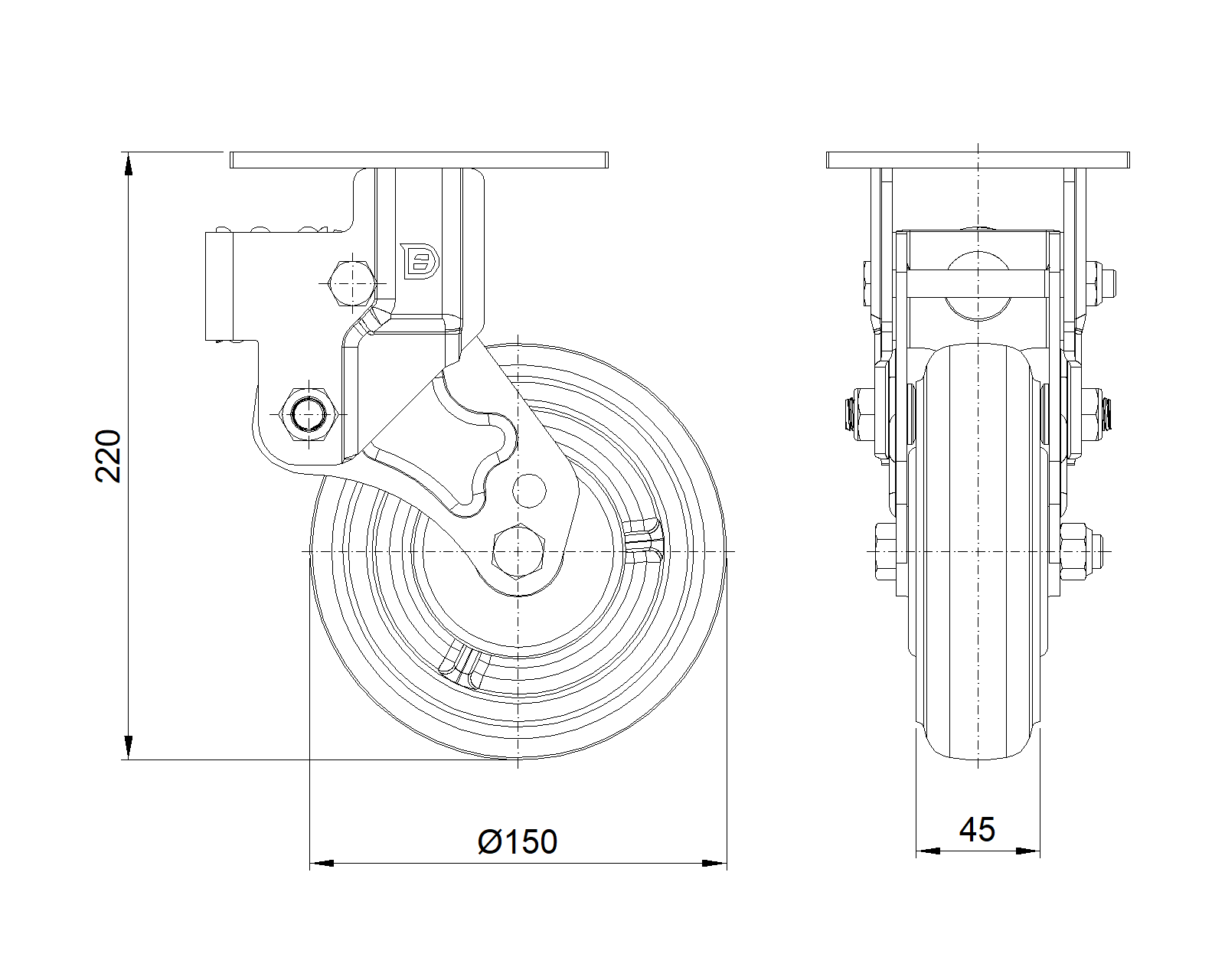 Wheel tread: Made of high-quality polyurethane Wheel Center: iron core/cast iron core Drawings are for reference only and may differ from the product |