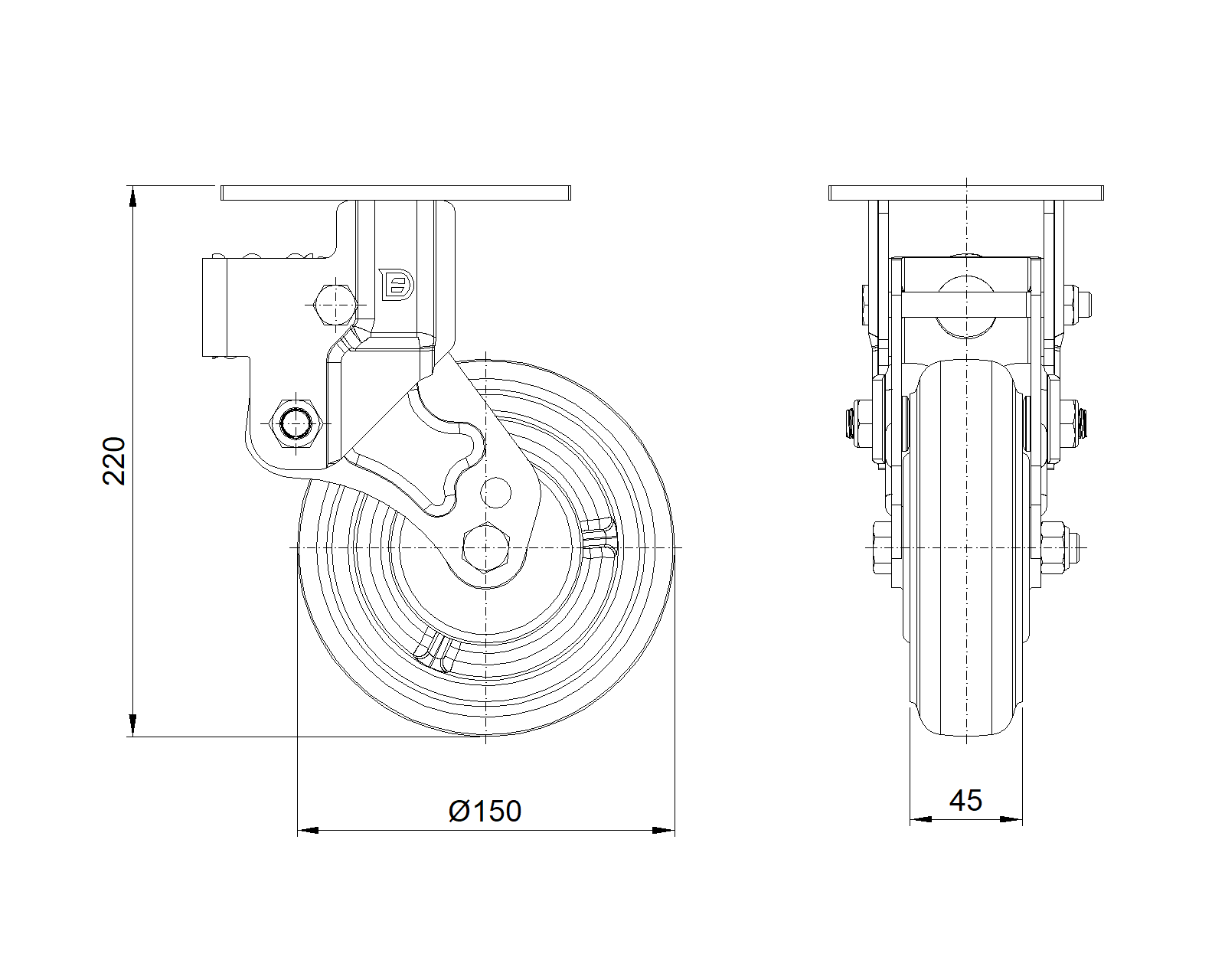 Wheel tread: Made of high-quality polyurethane Wheel Center: iron core/cast iron core Drawings are for reference only and may differ from the product |