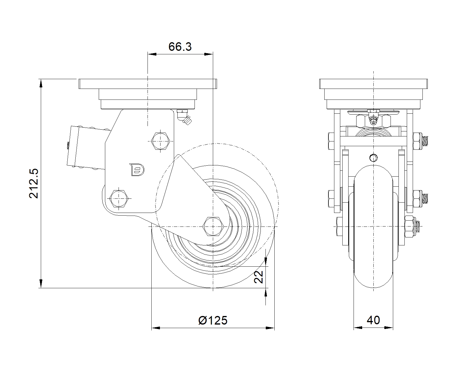 EQPU (Brown round) Wheel Diameter × Wheel Width 125 x 40mm |