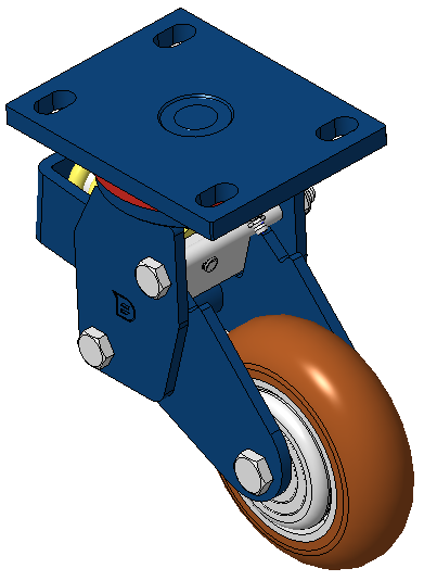 Blue painted finish, Mounting Type - Top Plate, 110x75 Bolt Hole Spacing Cast Iron core with High Quality Polyurethane Wheel Tread, Cast Iron brown Bearings—Ball Bearings |