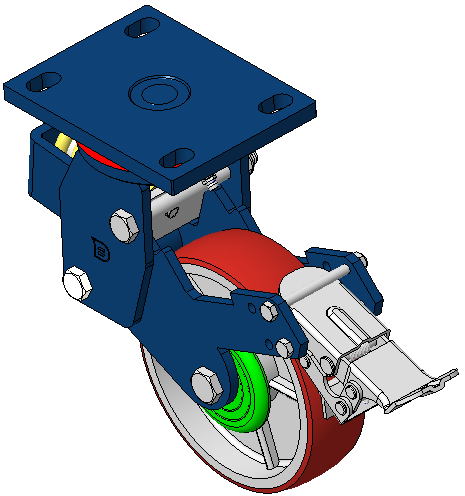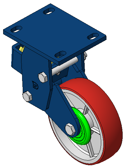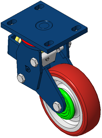 Blue painted finish, Mounting Type - Top Plate, 110x75 Bolt Hole Spacing Cast Iron core with High Quality Polyurethane Wheel Tread, Cast Iron red Bearings—Ball Bearings |