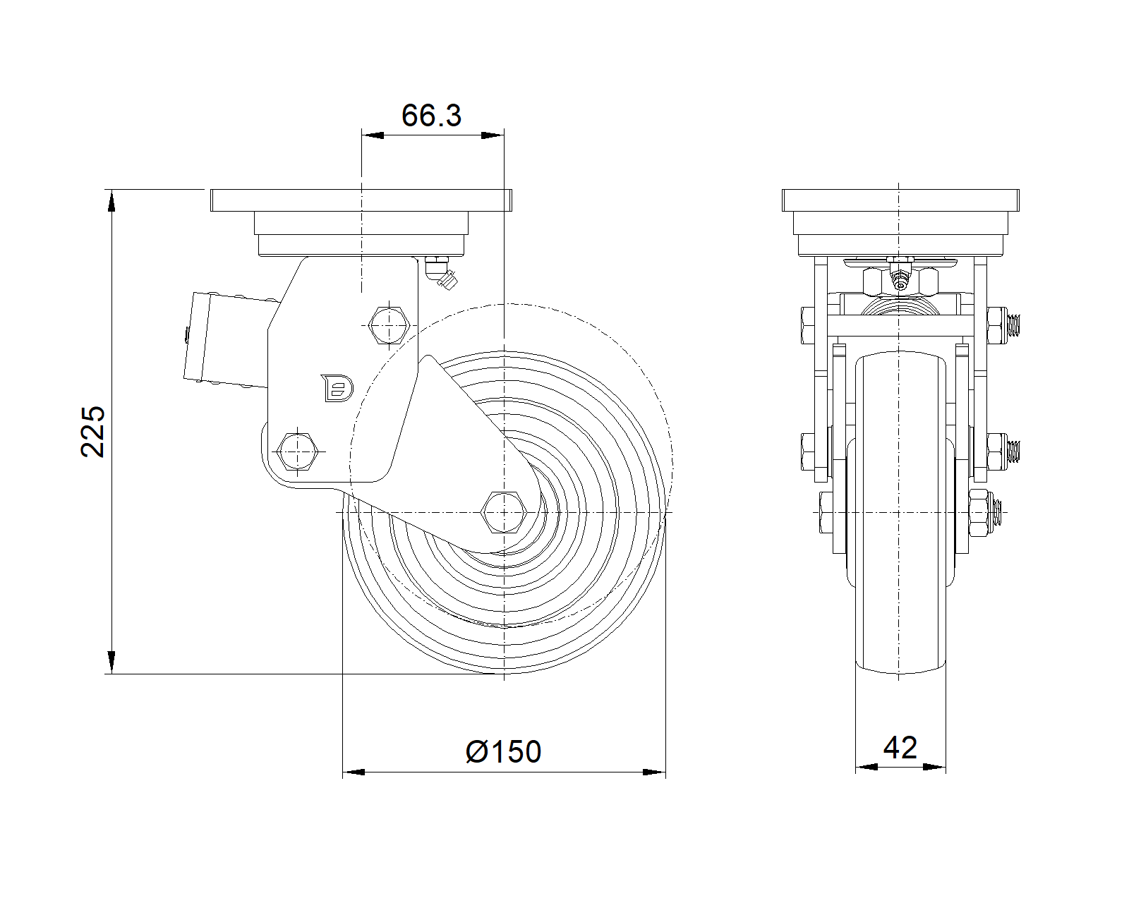 PU (red round) Wheel Diameter x Wheel Width 150x 42mm |