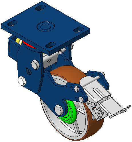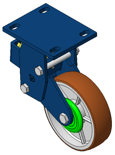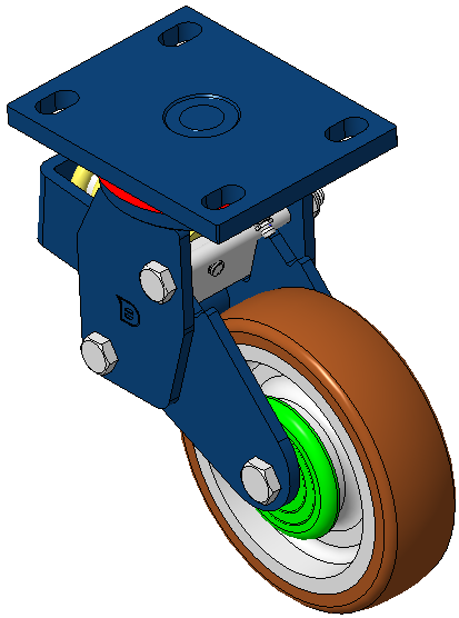 Blue painted finish, Mounting Type - Top Plate, 110x75 Bolt Hole Spacing Cast Iron core with High Quality Polyurethane Wheel Tread, Cast Iron brown Bearings—Ball Bearings |