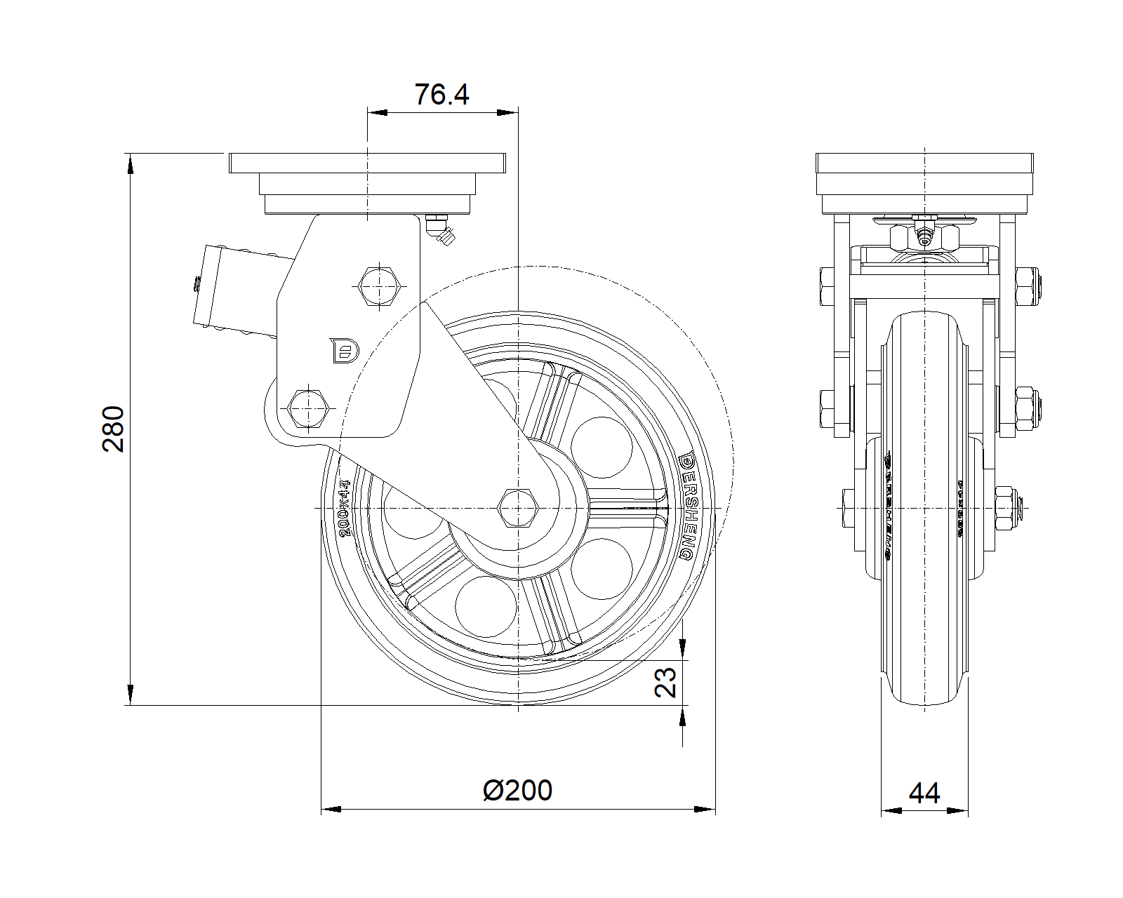 Non-marking NBR Rubber (milling) Wheel Diameter x Wheel Width 200 x 44mm |