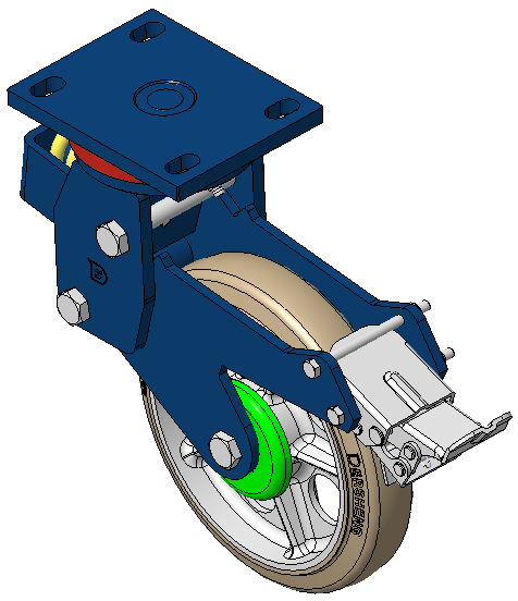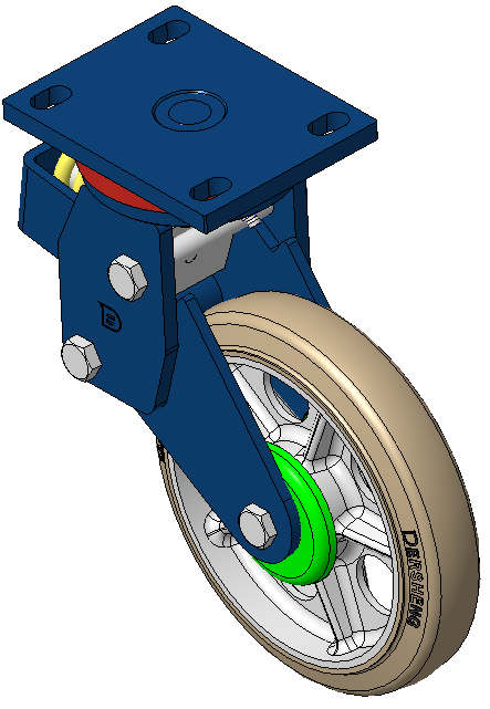 Blue painted finish, Mounting Type - Top Plate, 110x75 Bolt Hole Spacing Cast Iron core with High Quality Polyurethane Wheel Tread, Cast Iron black Bearings - Ball Bearings |