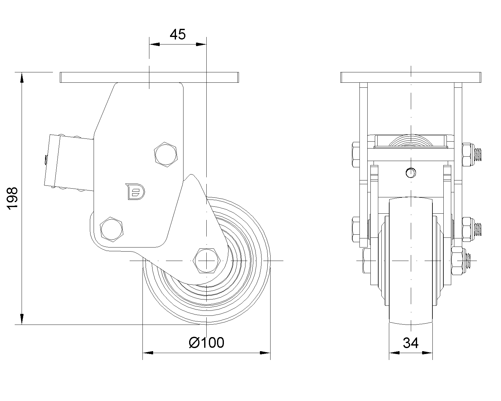 Mounting Type - Top Plate, 110x75 Bolt Hole Spacing. Cast Iron core with High Quality Polyurethane Wheel Tread, Cast Iron brown. Bearings—Ball Bearings. |