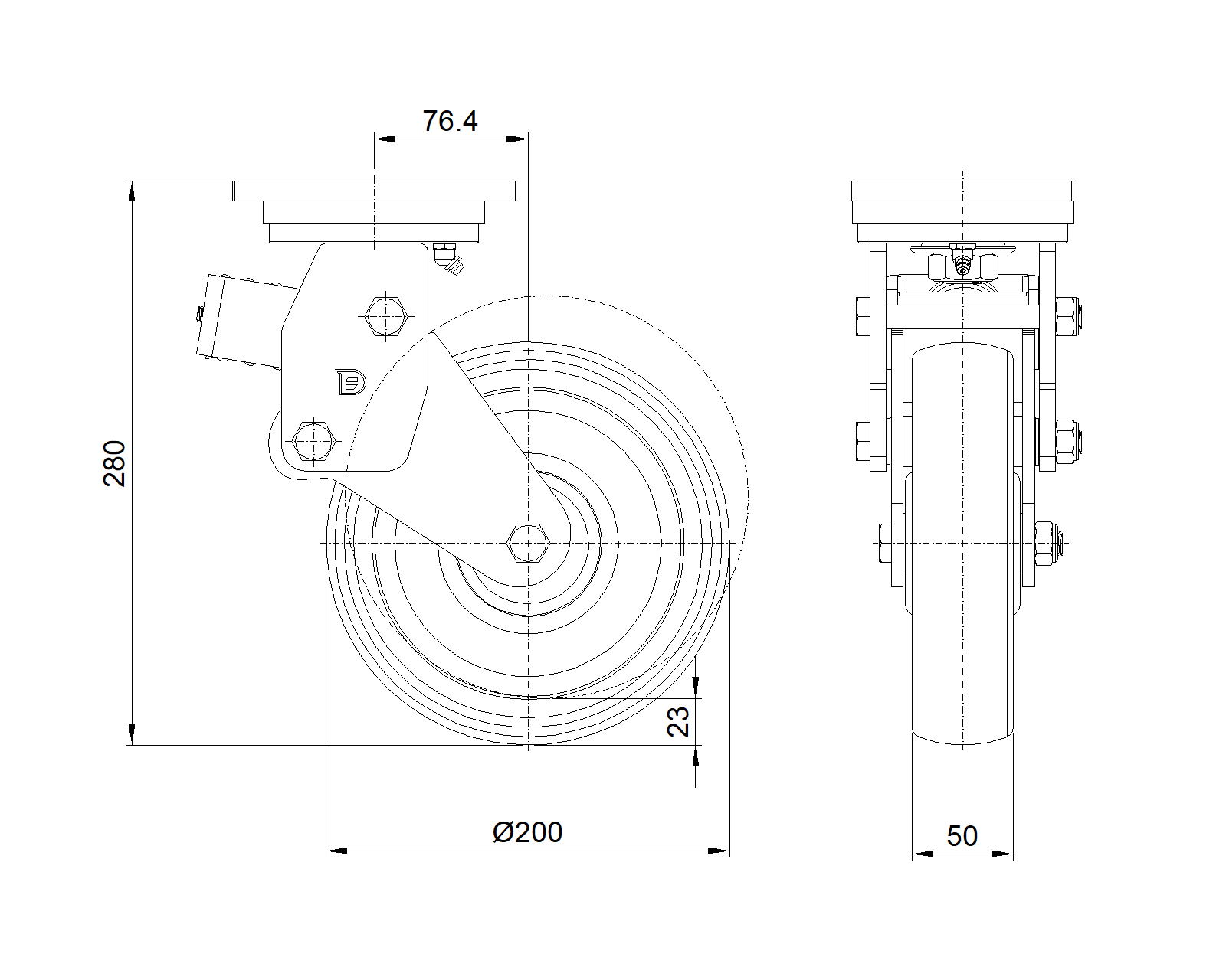 VQPU (brown round) Wheel Diameter x Wheel Width 200 x 50mm |